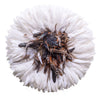 Mix black, brown & white Juju Hat : Enhance your walls with the captivating beauty of our Juju Hats. These handcrafted African wall hangings feature a vibrant burst of feathers meticulously arranged in a mesmerizing pattern. Each hat is skillfully made by artisans, showcasing their talent and attention to detail. With their striking colors and textures, Juju Hats bring a touch of cultural richness and natural elegance to any space, making them a captivating focal point and a true conversation starter. Experience the unique charm and cultural significance of Juju Hats in your home.